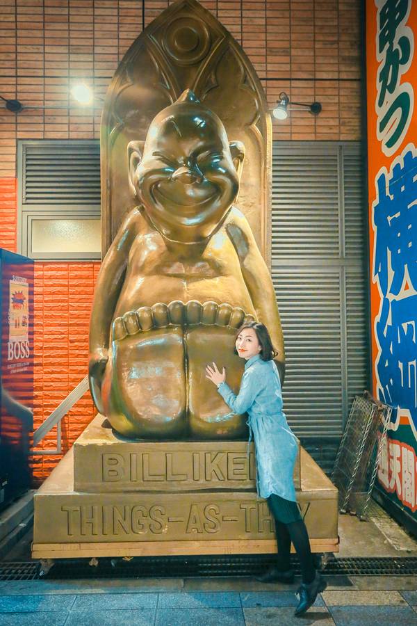 2.登上复古的通天阁俯瞰大阪,摸摸福神Billiken的脚板祈求好运。