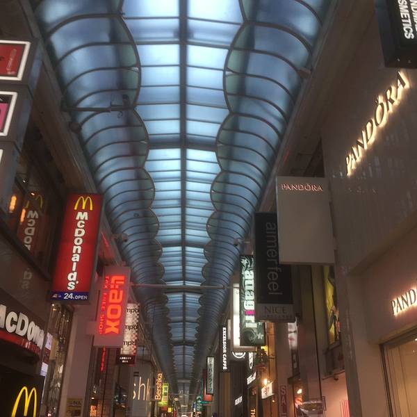 从心斋桥可以步行至黑门市场,会路过千日前,这里两边有很多游戏厅。