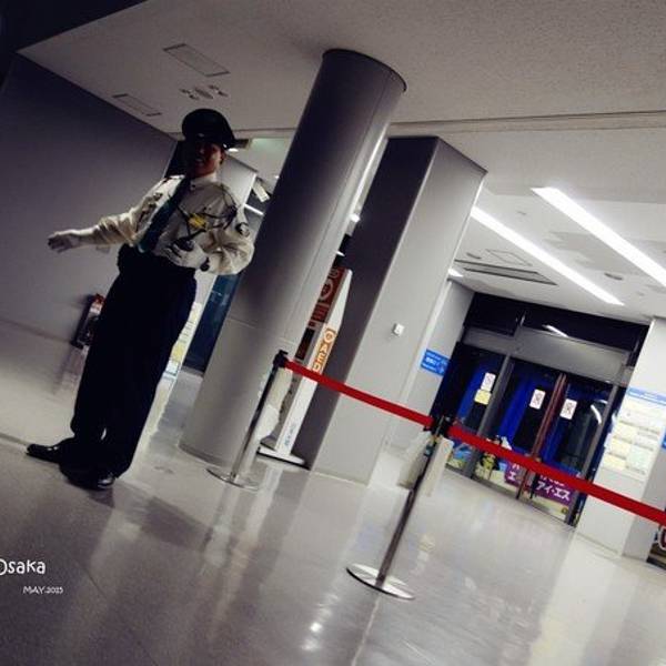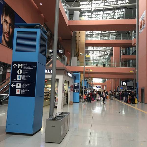 我们因为是坐电车直接从陆地跨海来到机场,所以并没有看到介绍里所讲的关西机场神奇的外观。只是有两件事需要描述一下: