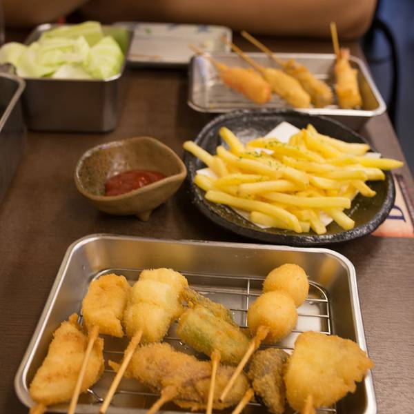 传统的日本烤肉店,招牌菜是炸猪串,饮料品种很多,可以任意挑选。