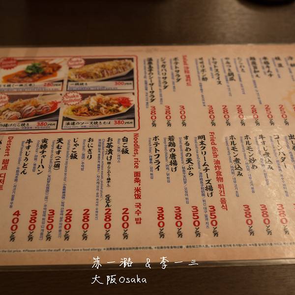 虽然说这是大阪有名的烧肉店,但我们点的寿司也是让我惊艳不已啊。尤其是它的三文鱼厚煎,配上新鲜的柠檬汁,真的是超级赞,而且鱼本身就很新鲜,所以怎么做都很好吃。寿司的材料也是一级棒的,吃起来一点也不腥气,而且Q弹爽口,真的是回味无求。不过价格也不算便宜,几个寿司一份鱼,差不多4000日币,但还是很值得一试。