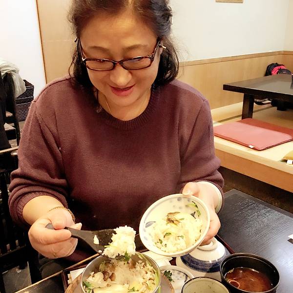 第三站 吃饭 志津香 既然哆啦睡着了,我们也可以踏踏实实吃个饭。早上路过时看到这家门口拍了好长队,我强烈反对为了吃排队。这时回来不需要等位了。于是进来决定尝尝,媳妇说很有名。吃法就是先吃中间部分的米饭...