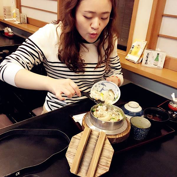 第三站 吃饭 志津香 既然哆啦睡着了,我们也可以踏踏实实吃个饭。早上路过时看到这家门口拍了好长队,我强烈反对为了吃排队。这时回来不需要等位了。于是进来决定尝尝,媳妇说很有名。吃法就是先吃中间部分的米饭,同时盖上盖子闷着,然后再吃四周的米嘎巴儿,最后再吃锅底的米嘎巴儿。。。对于不是吃货的我来说,这就是全部解释。。。。