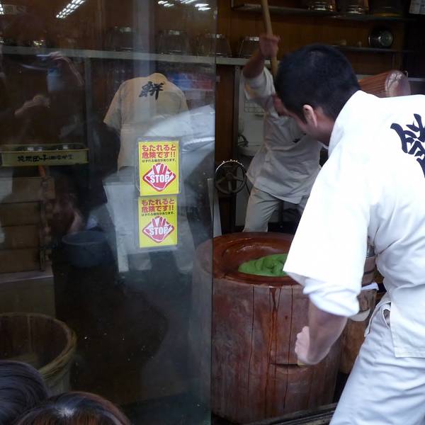 走在飘着小雪去往奈良公园的路上 很容易就见到这家店 实在是没办法移开目光 因为声音实在是太太大了 三位打扮传统的阿哥 呼天喊地地卖力工作 其实是日本果子,130日元一个 前期制作方法类似于中国的年糕、糕团或...走在飘着小雪去往奈良公园的路上 很容易就见到这家店 实在是没办法移开目光 因为声音实在是太太大了 三位打扮传统的阿哥 呼天喊地地卖力工作 其实是日本果子,130日元一个 前期制作方法类似于中国的年糕、糕团或糍粑 唯一不同的是制作声浪无比大 大到不需要任何音响或喇叭 最后旁观了几分钟实在是碍于声响 以及吊起来了宝宝的胃口 买来了几个吃 但口感其实和巨大声浪还是有反差的 因为没有吃完让我惊艳到马上再买几个 但冲着卖力的表演 还是值得去打个卡的