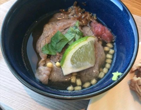 - ...,也就是牛肉汤不错,日本的牛肉汤的确很有水平,牛肉超级嫩,煮出来是五分熟,汤底很鲜,水果很不错