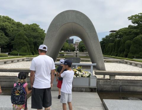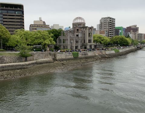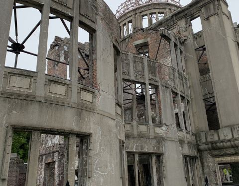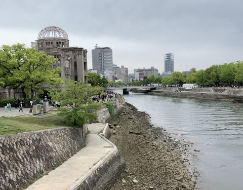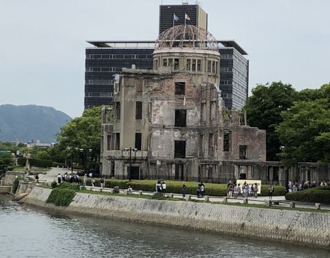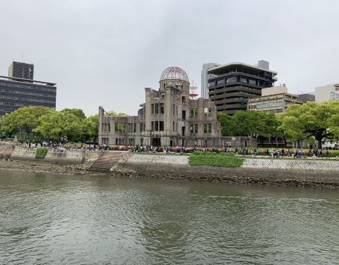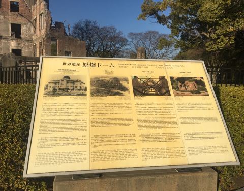 参观广岛原子弹爆炸事件中唯一保留下来的建筑遗址,祈盼和平。