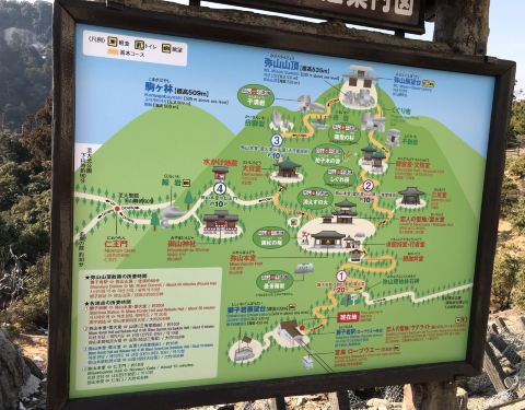 弥山是宫岛的主峰,海拔535米。山中的原始林被指定为天然纪念物,是以针叶树为主同时混杂着一些南方植物的森林。这里也可以观察到在自然生长状态下的山车类原始植物。 乘坐空中缆车登山,从半空眺望宫岛壮丽的景色十分美妙。空中缆车的终点旁边设有狮子岩展望台,从这里可以尽情欣赏风光明媚的濑户内海。继续步行至山顶,360度的展望视角更加迷人,晴天时还能远眺四国的山峰。 你也可以从山脚开始徒步登山,别有情调,沿途还会碰到许多可爱的鹿。这里有三条不同方向的徒步登山路线,分别为红叶谷路线、大圣院路线和大元路线。 此外,在弥山山顶也有不少神社佛阁等古迹可以探访。