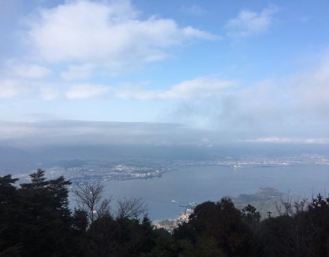一大清早就坐缆车上弥山 从红叶谷坐了两程索道上来后 又爬了40分钟 终于到宫岛的最高峰 弥山山顶
