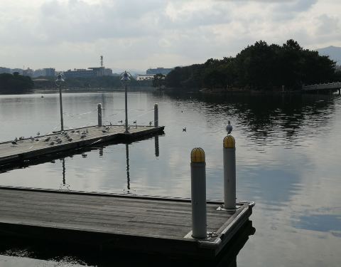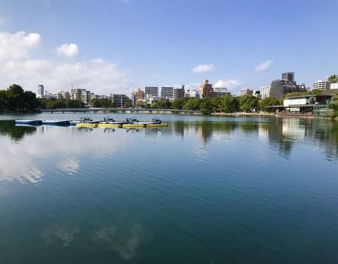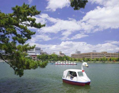 大濠公园中央是一个湖。下午写意的吃著下午茶,看着人们在玩水上单车,是一个有趣而舒适的画面大濠公园中央是一个湖。下午写意的吃著下午茶,看着人们在玩水上单车,是一个有趣而舒适的画面。你也可以租一辆单车围绕湖转一圈。如果想步行的话约需要30分钟。