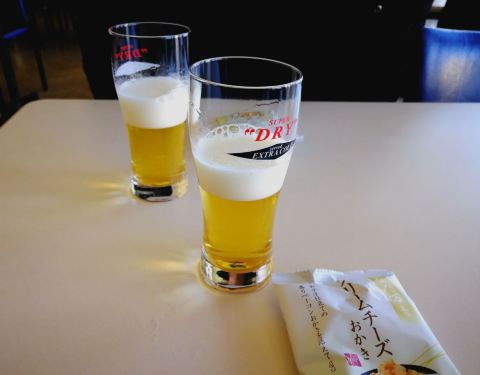 到福冈的朝日啤酒厂参观,由引导员带领着介绍了啤酒的制作过程,参观完就是品尝咯,每人一大杯啤酒,还有一小袋零食,我们喝酒的环节是有时间限制的,一杯酒还未下肚,就该离开了。啤酒的味道和啤酒厂的环境都还是很不错的。