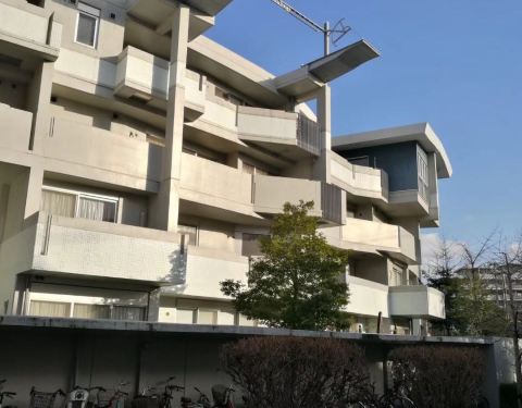 福冈香椎集合住宅,又名纳克索斯世界(Nexus World) 是 1990 年代经济泡沫破灭前疯狂的财力支撑的产物,当时是闻名日本的住宅开发项目之一。住宅区用地为 238m×285m, 中间有一条贯穿南北方向的 S 形道路。著名建筑师矶崎新担任了总策划,雷姆·库哈斯、 斯蒂文·霍尔 、 马克·麦克 、 克里斯蒂安·德·波特赞姆巴克 、 奥斯卡·图斯克特 、 石山修武 分别承担了 6 个住宅的设计。 图二是库哈斯设计的,底层给了沿街商业,二层其实是楼上住宅的内院院墙,这大底盘上栽了许多小别墅,内部以前在书上见过照片,还不赖。69岁年轻的大巴司机衫元先生纳闷的说:“你们怎么要来看这么难看的建筑?”真为大师难过