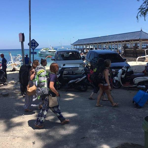 是个码头,从库塔过去大约45分钟样子,那里有很多船家,每家都有不同的贴纸贴在自己身上,凭这个来识别自己的客人,上厕所差不多人民币三块,全在一起等船去吉利群岛和龙目岛