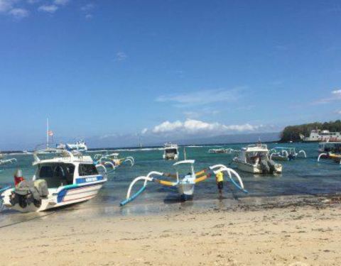 照片中正在冲我们打招呼的是一位热情的潜水教练,问了问浮潜的价格,1人12.和刚潜水回来的老外第6天早上11点离开坎迪达萨,前往阿雅娜,路过八丹拜,午餐