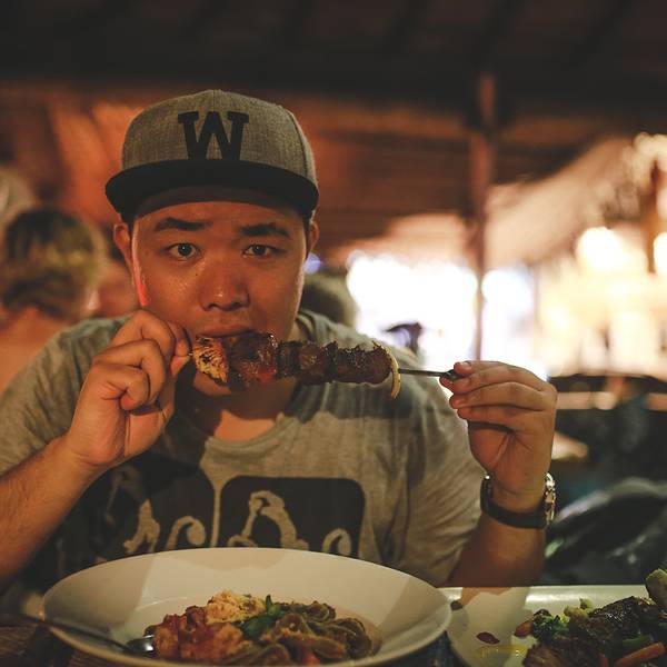 我们情人节晚餐安排在乌布大街Nomad餐厅,服务员都很热情,进门马上帮你戴上鸡蛋花 费用:130RMB(BBQ牛肉串、意面、饺子、甜品、饮料两杯)