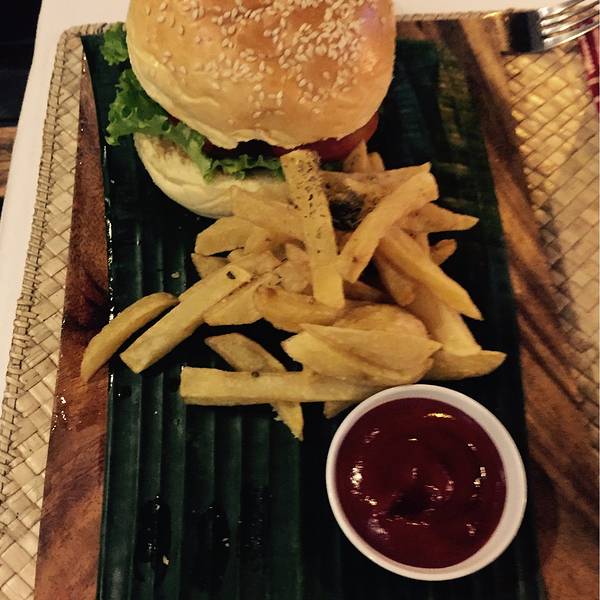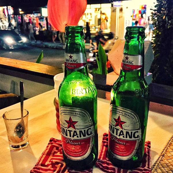 等我们都收拾的差不多了,时间也不早啦,本来此行也不是为了刷景点的,我们更倾向于感受当地的风土民情。乌布皇宫附近有好几条小吃街、酒吧、餐吧、小吃一应俱全,傍晚暑气退去,趁着夜色在喧闹的街边,望着异国他乡的车水马龙喝两杯,眼前市井的喧闹里又一种别样的烟火气。 这边大众点评可以用,很多餐厅在上边都可以找到。这样街边的店感觉很好薯条很不错哒,大汉堡,一个姑娘吃不了面的味道甜甜哒这款酒黄标柠檬味的好喝