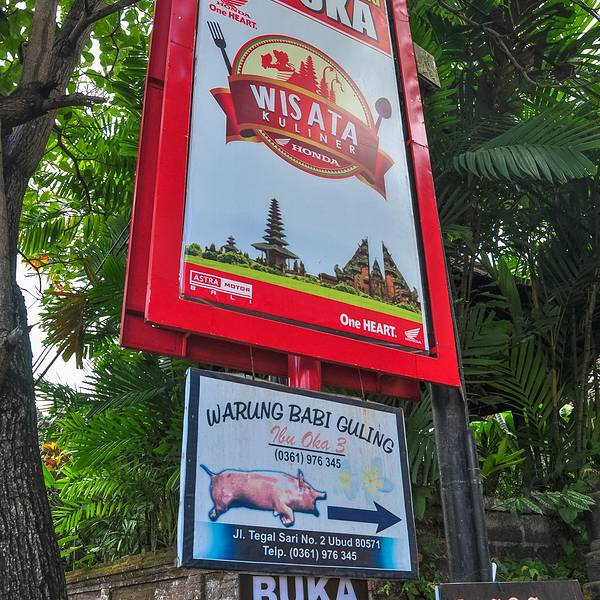 最有名的烤乳猪店IBU OKA ,在乌布皇宫的对面是一号店,人影也没有,就沿着指示牌走去了2号店。PS,乌布皇宫还真是很坑爹的一个地方,走进去,30秒转一圈,又问了里面的当地人:“这是乌布皇宫?”然后得到了非常肯定的回答。。。没有拍照
