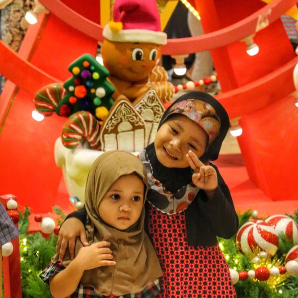 KLCC靠近地面的几层为大型商场,商场有6层, 包括多个综合超市、百货商场、世界名品专卖店、美食中心,书店和娱乐中心。如果持有中国护照到KLCC负一层可以办理外国人购物优惠卡,到指定商铺贩物,还有9折优惠。在吉隆坡这两天正好赶上圣诞节,商场里节日气氛满满的~小萌娃们超可爱。妹妹这多愁善感的表情实在太可爱啦!