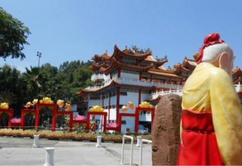 乐圣岭天后宫的门票免费,和关帝庙一样,都是华人用来思乡祭祖修建的乐圣岭天后宫的门票免费,和关帝庙一样,都是华人用来思乡祭祖修建的。 从寺庙也可以欣赏到周围的美景,地下室有一个食堂。周围环绕着许多雕像的花园,雕像下面是一个锦鲤池,还有月老的雕像。