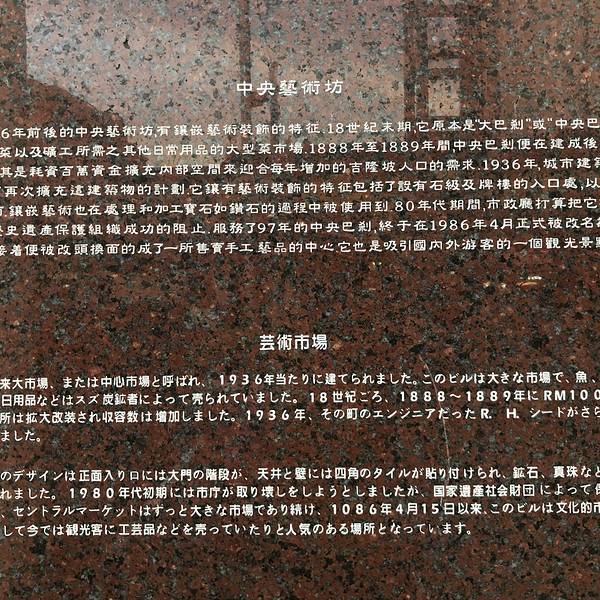 Central Market中文名叫中央艺术坊,位于大马首都吉隆坡的市中心位置,乘坐吉隆坡purple line在Pasar Seni出站便可以看到这个有点类似于老车站的市场。这里起源于1888年,前身是一个大型的菜市场,后来于1936年被...Central Market中文名叫中央艺术坊,位于大马首都吉隆坡的市中心位置,乘坐吉隆坡purple line在Pasar Seni出站便可以看到这个有点类似于老车站的市场。这里起源于1888年,前身是一个大型的菜市场,后来于1936年被改造设计成了现有的格局。中央艺术坊有点类似于国内的工艺品商店,里面主要销售的有马来西亚的一些手工制品,装饰品以及特产,像大马著名的木制品、锡制品、包括东革阿里,在这个市场里面都能够找得到。这里的木制品,大多都声称是胡桃木的,由于自身知识浅薄,是不是真的胡桃木不得而知,木制品均是可以折叠的,打开后便是各种果盘、篮子以及凳子等,合上之后又不是很占空间,显得异常的精致。这里所有的商品,都是可以砍价的,并且砍价的幅度很大,我们看重了一个木质的篮子,最初要价为425马币,最后200马币成交。除了艺术品外,商场里面还有类似于OLD TOWN等吃饭的地方,推荐唐人街门口的一家榴芒冰沙,只要7马币,一大杯很好喝。另外中央艺术区里,有2个外币兑换的窗口。不过两家的汇率竟然是不一样的,推荐OLD TOWN对面的那家,汇率要更好一些。其实我重点想要介绍的,是这个市场的周边环境,这个市场距离著名的茨厂街步行大约5分钟可达,附近还有关帝庙,印度教寺庙等可以游览。从市场去独立广场,加密清真寺,也都在10分钟左右的步行距离,因此这些景点,可以安排在一条线路游览,更加的方便一些。