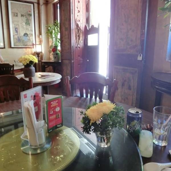 先不论食物怎么样,但是满满的中国元素,说什么我也要进去观赏观赏,一种很有年代感的门,摆放的都是原桌,而且桌上用不同的瓶子装这花,牡丹花的菜谱,真的不错,食物也就还好,不过不失,管饱绝对不是个问题。