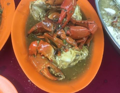 来到这里先要有心理准备,因为这里人潮汹涌,晚餐时间大排长龙哦!硕大的螃蟹是这里的卖点,无论清蒸,烧烤,炒咖喱酱或酸辣酱都那么好吃!当然,若要品尝到螃蟹真正鲜美的味道,最好要清蒸。 由于主要吃螃蟹,所以这里的菜色并不多,只有炒饭、蒸虾和蒸鱼,味道不过不失。在等待螃蟹上桌前,不妨来十串马来沙爹和炸鸡翅,个人挺喜欢他的炸鸡翅,表皮酥脆,肉质柔嫩又肉汁饱满。