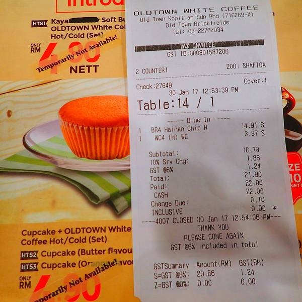 飞了一夜,估计每个旅人都会有点饥肠辘辘,我去买电话卡之前先和老公在Old Town点了早餐。事实上我一点儿也不喜欢Old town的早餐,冰咖也觉得不如后来在槟城喝的好喝。