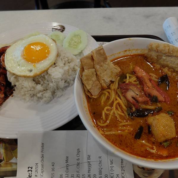 鸡饭;咖喱面,好吃,马来西亚的咖喱都有一点辣。经典原味白咖啡,还带有黑咖啡原有的酸甜味;榛子味白咖啡,比原味甜一点,但我也喜欢。