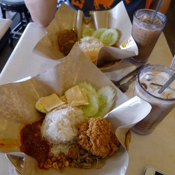 - 椰浆饭配鱿鱼,辣辣的,很好吃,Ong还特意为我点了一杯黑咖啡,味道有点像美式,但是更醇香
