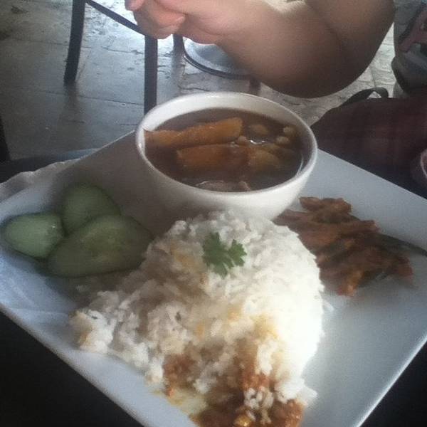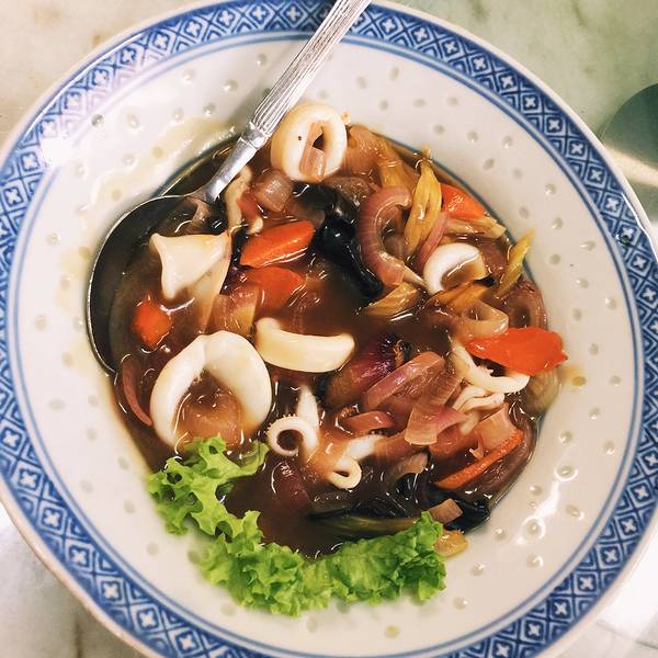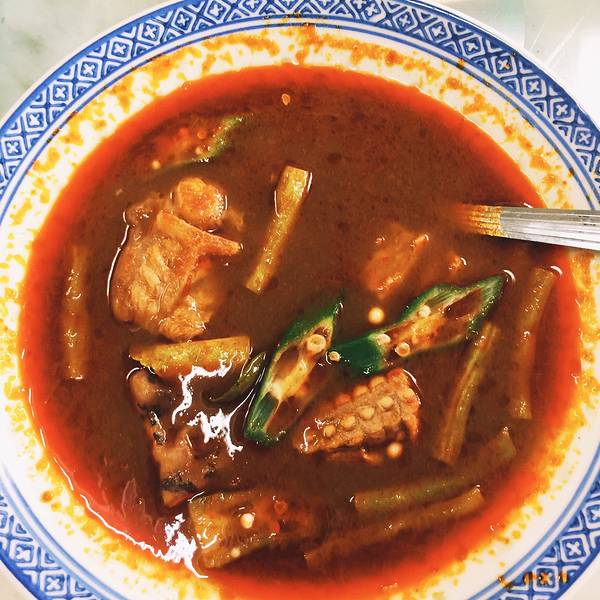 李太娘惹餐馆(Aunty Lee Nyonya Food)于 1997 年开始营业,虽然没有什么门面摆设,在马六甲当地却有口皆碑。餐馆老板娘李太是一位娘惹,如今已经 70 多岁,有个女儿协助她打理餐馆生意,从切菜捣葱到烹煮,包办厨房一切大小事物。李太在准备娘惹料理时特别讲究食材的准备过程,比如辣椒酱每天都要用石臼研磨,咖喱料要用天然香料来调配,腌制豆浆的肉类要腌足一天等,样样亲力亲为。特别推荐的娘惹菜是娘惹豆瓣鸡、羊角豆料理(Bendi Ulam)和 Tempra 墨鱼。娘惹豆瓣酱鸡是最为普遍的娘惹料理,先以红葱、蒜头爆香油锅,再加上剁碎的豆瓣酱,之后用慢火炖煮鸡肉,最后 再加马铃薯烹煮,这道菜讲究豆瓣酱的香郁和鸡肉的嫩滑入味。羊角豆料理则是在羊角豆蒸熟后,在其上放洋葱、虾米、辣椒和虾酱等佐料调配,说起来是一道简单菜肴,味道却一级棒,酸辣中带着虾米的香味,口感极佳。而Tempra 墨鱼单从卖相来看会让我们自然而然联想到宫保料理,可它的味道却是截然不同的 , 这道菜是用黑酱油、豆瓣酱和亚参(Asam)组成的酱汁搭配番茄、洋葱、蒜头和番茄等其他食材烹制而成。