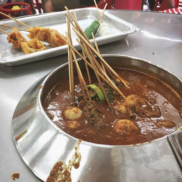 在马六甲有2家万里香,一家是万里香沙爹朱律茶餐室,另一间是正宗万里香沙爹朱律。后者是兄弟分店。不过很明显的是从万里香沙爹朱律茶餐室看到了强调酱料的正宗的牌子“本店旧万里香的酱料才是原味”。 沙爹朱津就是采用沙爹的特制酱汁来做汤底,为避免花生碎米粘锅,吃的时候建议时不时搅拌。马六甲的沙爹朱津不仅用多种不同香料烹煮而成,往往还会在汤底中加入其他佐料,有时候是椰糖,有时候是印度香料,吃起来或带有丝丝甜味,或带有浓郁的咖喱芬香。