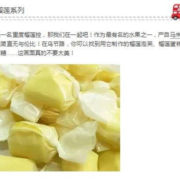乌节路的商场云集,高岛屋百货(Takashimaya),地下二层有很多日式点心。不过我的目的则是Bengawan Solo,当地一流的娘惹糕饼屋。最新鲜的食材,传统的制作方法,非常受欢迎的当属黄梨塔、班兰蛋糕(绿蛋糕)以及千层糕,这些都是新加坡人平时最爱吃的糕点。 价格小贵: 黄梨塔SGD38 班兰蛋糕SGD1.2/块,SGD12.8/个 凤梨酥(小)SGD18.8 娘惹糕有很多种,我的最爱当属千层糕,SGD1/块,保质期很短,不适合当礼物。 在樟宜机场三个航站楼中都有此柜台,特别提示T1是在站外购买,如果错过也不要紧,可搭乘SKY TRAIN 去T2、T3购买