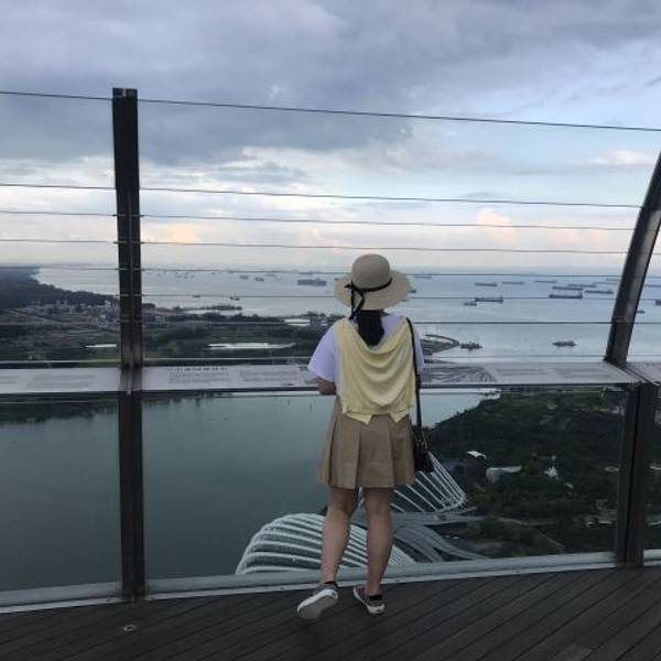 新加坡空中花园如同一个巨型的冲浪板横跨在三座酒店的顶部。空中花园设有可同时容纳几百人的公共观景台,大家可以在此能一览鱼尾狮公园、滨海湾、以及新加坡城市的壮观美景。其中一端延伸出去的观景台,是世界上最大的公共悬挂地。这里要注明一下,我是个超级恐高患者!!虽然只有56楼,但当我默默往玻璃靠近的时候,只感觉头发晕、四肢冒冷汗、双脚发软!!对,我就是那么没出息!!~相反葵宝开心极了,在天台上又蹦又跳,到处拍照,我急的叫她:“轻一点啊,别那么大力跑来跑去!你没感觉到房子在风中摇晃么!!” 展开