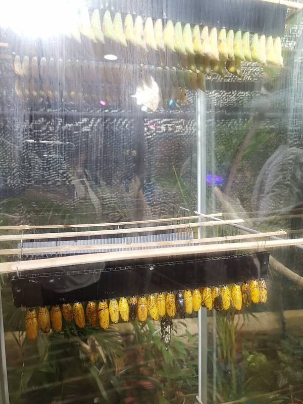 在Mall旁边还有一个food court,有多种选择。新加坡吃饭真的很方便在蝴蝶馆可以看到蝴蝶破蛹的过程超大的蝴蝶弹珠台,可以自己布置,好想买一个放家里玩。。。这个就是在沙上投影一些金鱼,但小孩爱玩得不行感受飓风的威力,太多人排队,没有体验;感受了模拟的地震,但是没有拍照。最想看的闪电表演(Tesla Coil Show)没有看到,据说是每天中午12点有一场著名的棋盘阴影