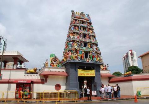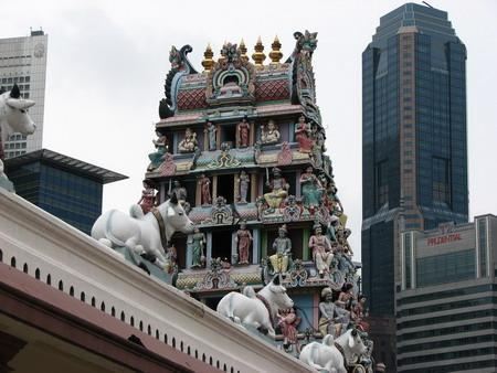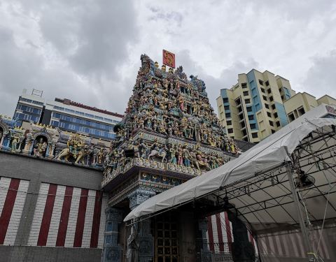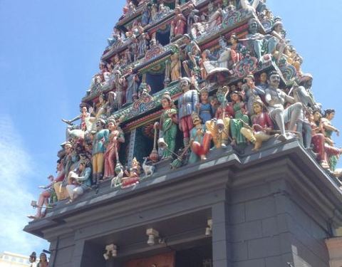 新加坡古老的印度教寺庙,欣赏各种栩栩如生的神灵和圣兽雕像。
