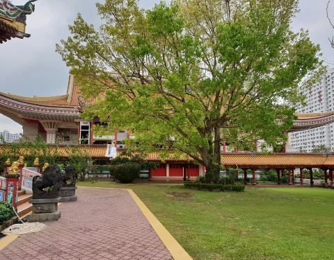光明山普觉禅寺是孔孟山火葬场内最古老的寺庙之一,这座寺庙有三个白玉佛像,代表过去,现在和将来,门票是免费的,欢迎捐款。 虽然是华人寺庙,但是还是有南洋的建筑风格,旁边还有泰国的寺庙,观音像前面的草地...