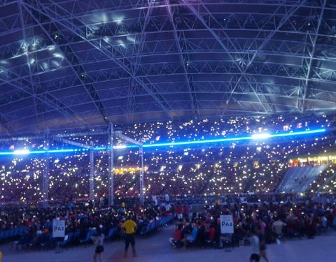 虽然观看演唱会的游客很多,但是每个出入口都有人员指导秩序,使整个会场有序不乱这里的看演唱会的气氛超棒!到这里的交通非常便利,可以乘坐公交到Natl Stadium公交站、People's Assn公交站或者Kallang Squash Ctr公交站下车后步行5分钟到达。体育场的旁边于“加龙威”零售商场、新加坡运动博...这里的看演唱会的气氛超棒!到这里的交通非常便利,可以乘坐公交到Natl Stadium公交站、People's Assn公交站或者Kallang Squash Ctr公交站下车后步行5分钟到达。体育场的旁边于“加龙威”零售商场、新加坡运动博物馆等等,而且周边还有很多美食,所以这边的生活非常便利。体育场的设计简单但是独特,这是一座拥有55,000个座位的国家体育场,主要用于举办音乐会和其他如足球、体操等赛事,另外还有水上运动中心、多功能室内场馆及大量社区体育设备。虽然观看演唱会的游客很多,但是每个出入口都有人员指导秩序,使整个会场有序不乱。体育场的音效、特效、光线都很棒,在这里看演唱会绝对是一种非凡的体验! 展开