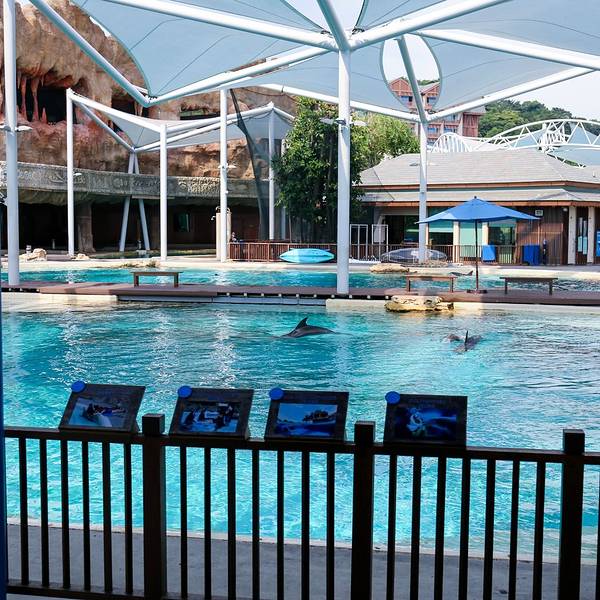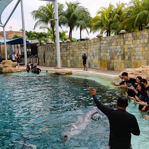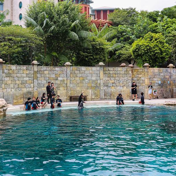 圣淘沙名胜世界的海豚园由 11 个相连的泻湖组成,是 20 只印度太平洋樽鼻海豚的栖身之所。自 2013 年开 业以来,海豚园推出一系列浅水及深水互动体验,吸引众多访客近距离接触可爱的海豚,与这些令人着迷 的海洋哺乳类动物共度难忘时光。此外,海豚园在海洋研究及海豚的日常护养方面作出了许多努力。与访客分享与海豚有关的知识,借此开启访客将对海洋生物保育及保护的理念。