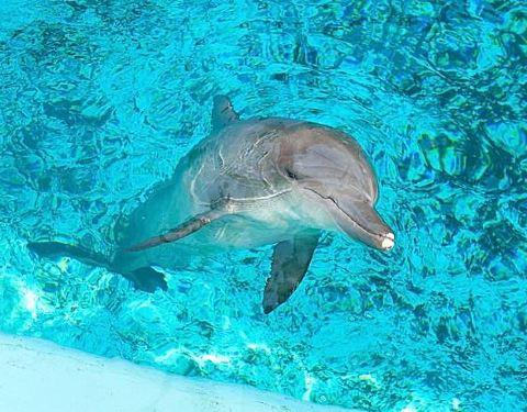 海豚那萌化的身躯、超高的智商、暖人的微笑,在不经意间,便惹得大家的喜爱。以前也见过海豚,可从来没有这么亲密的接触、互动。