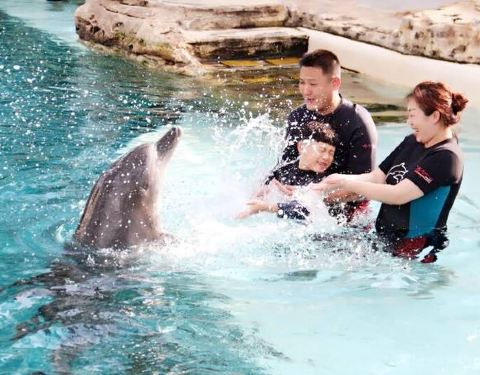 这个海豚园就是可以和海豚有亲密接触的,在网上预订这个海豚园就是可以和海豚有亲密接触的,在网上预订。有三种选项,比较小的孩子叫海豚观望,就是我们这边的海豚表演,第二种就是海豚接触(我们选的这个)还有第三种就是海豚伴游,相对于较大的孩子,水性好的孩...这个海豚园就是可以和海豚有亲密接触的,在网上预订。有三种选项,比较小的孩子叫海豚观望,就是我们这边的海豚表演,第二种就是海豚接触(我们选的这个)还有第三种就是海豚伴游,相对于较大的孩子,水性好的孩子可以选择这项。 展开