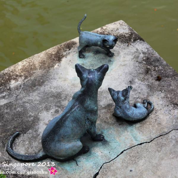 先找传说中的老巴刹吃饭。路上经过座桥,桥墩上的喵星人铜雕挺有意思。从教堂出来彻底不行了