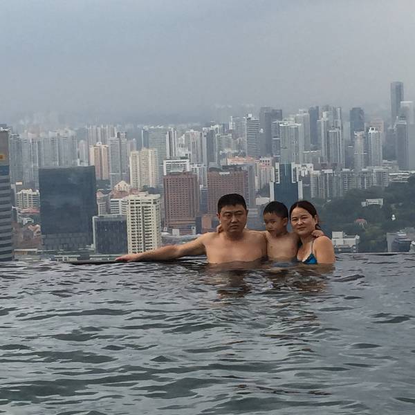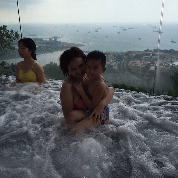 我邀请文君去金沙无边泳池游泳,她因为不需要在金沙住宿,只上去观光过,正好去体验一下。玩了一会儿她请我们去东海岸的珍宝海鲜店晚餐。