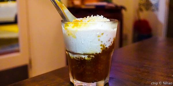 这家是做娘惹菜的。甜品榴莲珍多,上面覆盖了满满一层榴莲,下面则是刨冰、红豆、红糖以及娘惹特色的煎蕊。榴莲的果肉无比的细腻,加上红豆和冰凉的口感,很好吃。咖喱牛肉和鱼糕也不错。