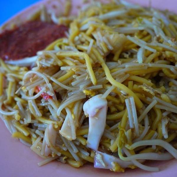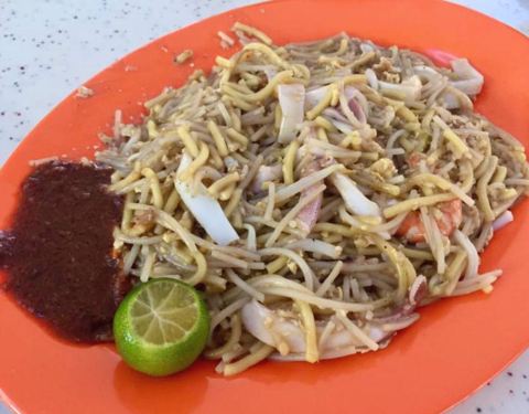 中峇鲁美食中心比较推荐的是鸿兴炒苏东炒虾面和海南起骨鸡饭两个档口,因为昨天吃的文东记,今天尝试炒虾面。 炒虾面和鸡饭一样,几个每个新加坡食阁里都有的,通常做法是大火爆炒黄面和米粉,加豆芽鸡蛋虾肉和鱿鱼。虽然看似简单,但是火候的把握是很重要的,面既不能太老,咬不动,也不能太生、黏糊糊。 这家档口的炒虾面火候合适,食材新鲜,香气扑鼻。价格4新币,合人民币20,物美价廉。