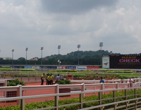 ...地铁站旁,进门5新币可以刷EZ-link 卡,可以看赛马,也可以根据自己喜好的马下注,小试手气