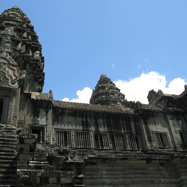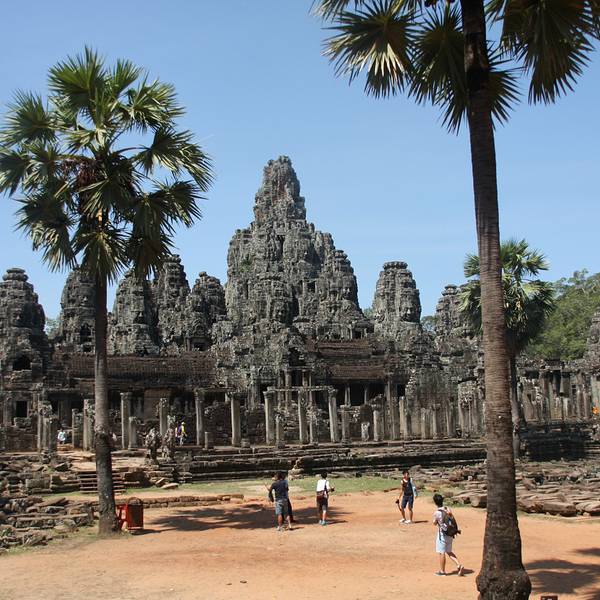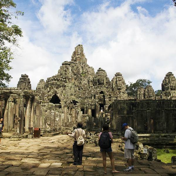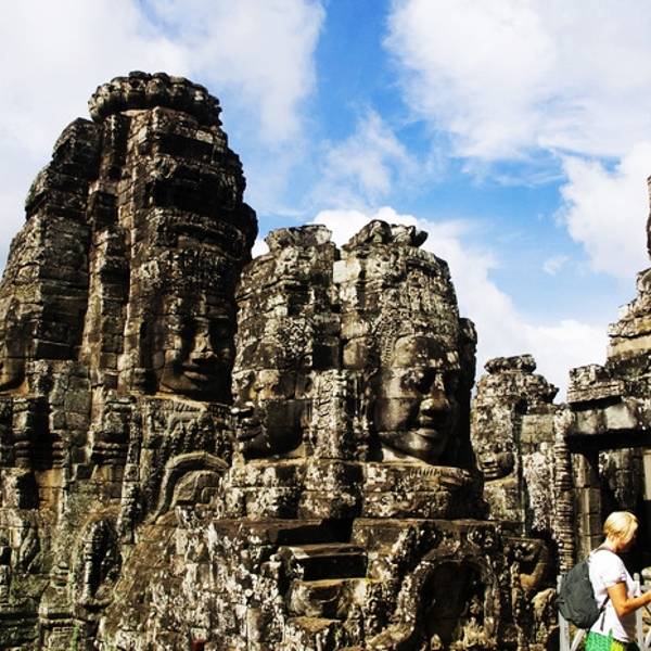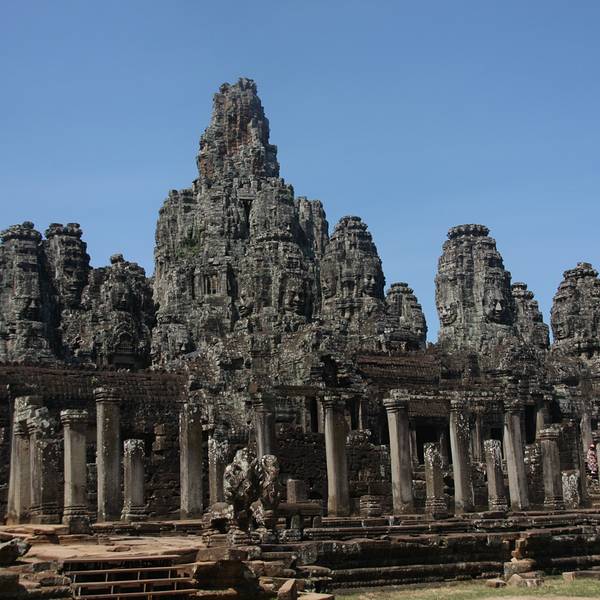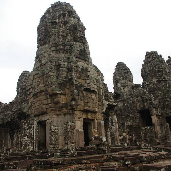 巴戎寺是吴哥古迹通王城中著名的寺庙,由苏耶跋摩七世修建。从外面看去,这座寺庙仿佛就是一座用巨石垒砌的石头山,由54座高低不等的巨塔组成,每座塔上都有4面巨大的佛像,共216尊。从远...二、宁静、壮观的巴戎寺