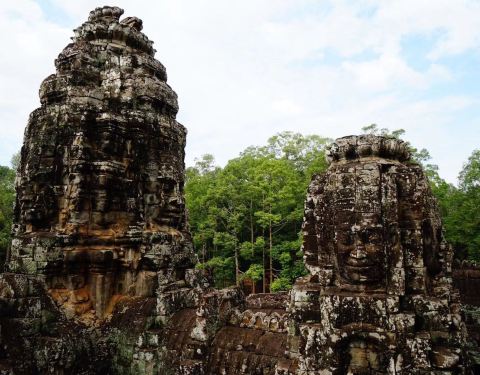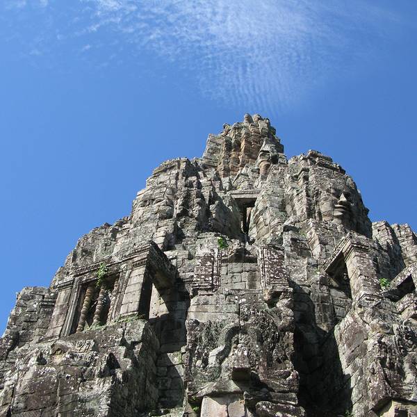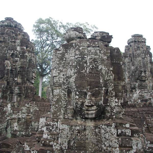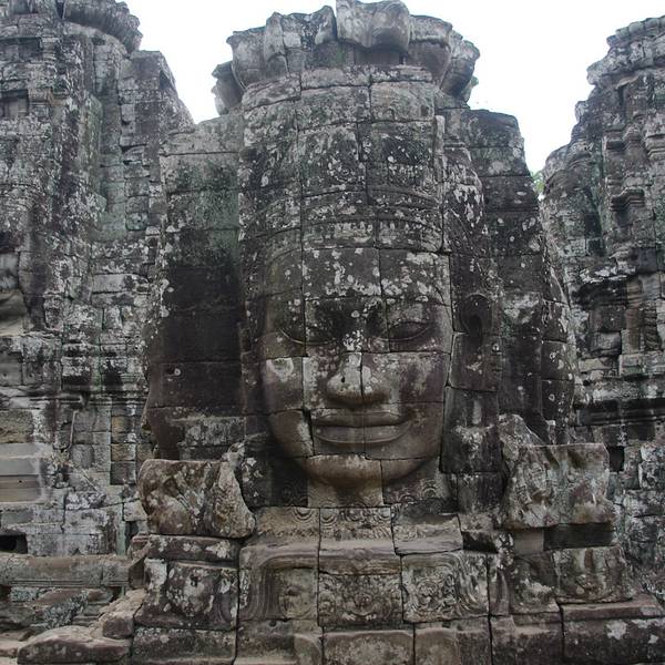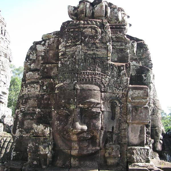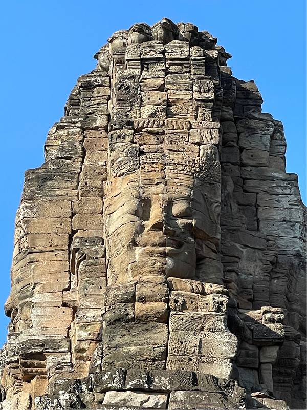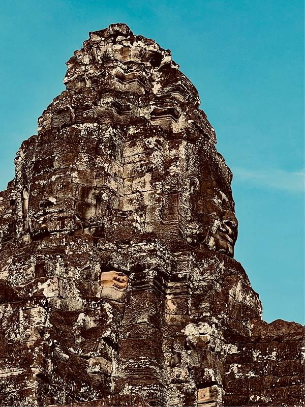 巴扬寺又译作巴戎寺,闍耶拔摩七世所建,信奉的佛教从印度佛教转为大乘佛教,建筑特点是200多座四面佛平和安逸的微笑,被称为“高棉的微笑”。