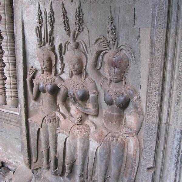 2、最为惊艳的是高棉的微笑、四面回廊的壁画。