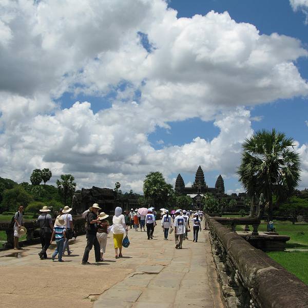沿护城河正西、正东各有一堤通往吴哥窟西门、东门。从西参道进去,经一段长达约600米的石板路后,方是正门。54座哥特式风格宝塔,四面都刻有神态各异的佛像,精雕细腻,神采奕奕,高高在上,俯视人间,那是闻名于世的“吴哥微笑”据说,那个迷人笑脸是神的脸庞,而更多的高棉人却愿意相信那是建造了吴哥城的国王嘉亚娃曼七世的微笑,堪比蒙娜丽莎微笑,四张面带微笑的面孔,分别代表了喜怒哀乐,静静地俯视人间,每个石框里,微笑的吴哥仿佛摆着Poss,等着你的注视与合影,而每一面的佛像都会随着光线的强弱及观看角度的不同,显示出不同的神态,老外喜欢在各个角落发呆或向往着什么,与吴哥国王对话?在景区内总会遇到当地柬埔寨小孩,小孩也能收到不少铅笔与糖果,不过吃多了,不知会不会蛀牙呀?巴戎寺的浮雕一共长1200米,非常精致,建议到吴哥三天的票是一定要买滴,喜欢吴哥的人,认为这里的每块石头都是艺术品,反之那些没有“艺术细胞"的人会说,这里的石头就是石头,^_^ 展开