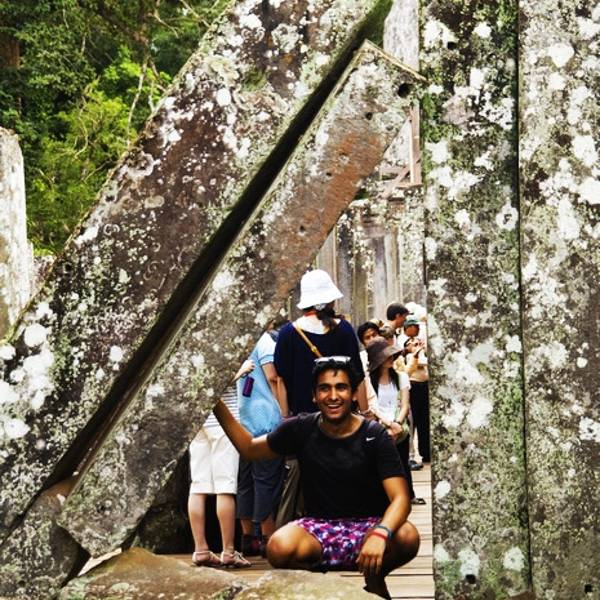 巴戎寺是一座由无数个笑脸对称的山,49座佛塔如同山峰连绵耸立,中间即为顶峰,颇有众星捧月质感,这些佛塔是面带微笑的四面佛,后面有很多散落的石块,都是经久岁月后坍塌的,很多石块上都做了记号,需要做拼图游戏,重新组合起来。