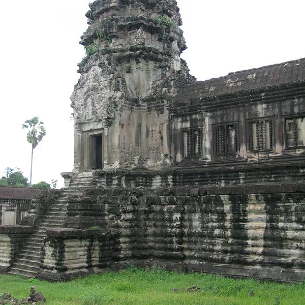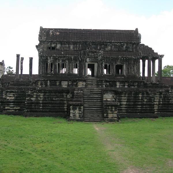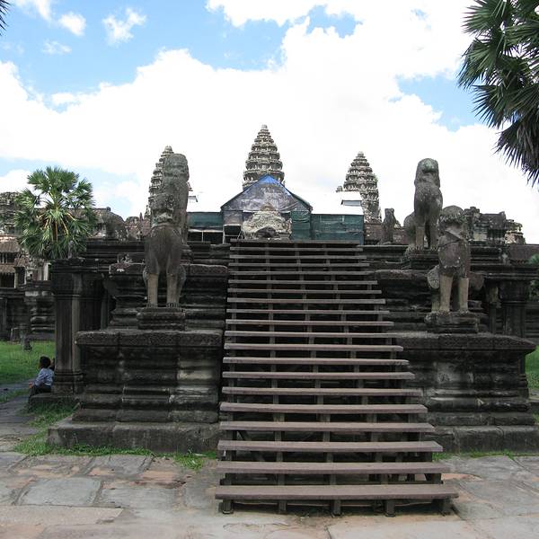 沿护城河正西、正东各有一堤通往吴哥窟西门、东门。从西参道进去,经一段长达约600米的石板路后,方是正门。5...巴戎寺是吴哥王城重要建筑之一,蜿蜒的走廊、陡峭台阶,还有49座佛像,尤以吴哥的微笑佛像最为著名。